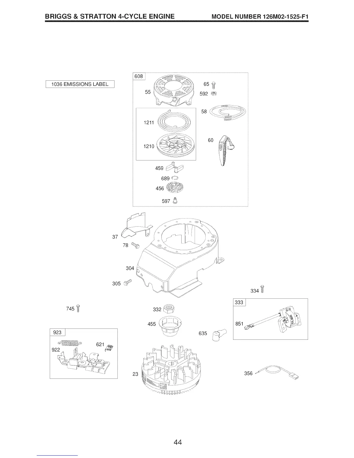 BRIGGS & STRATTON 4=CYCLE ENGINE MODEL NUMBER 126M02=1525=F1