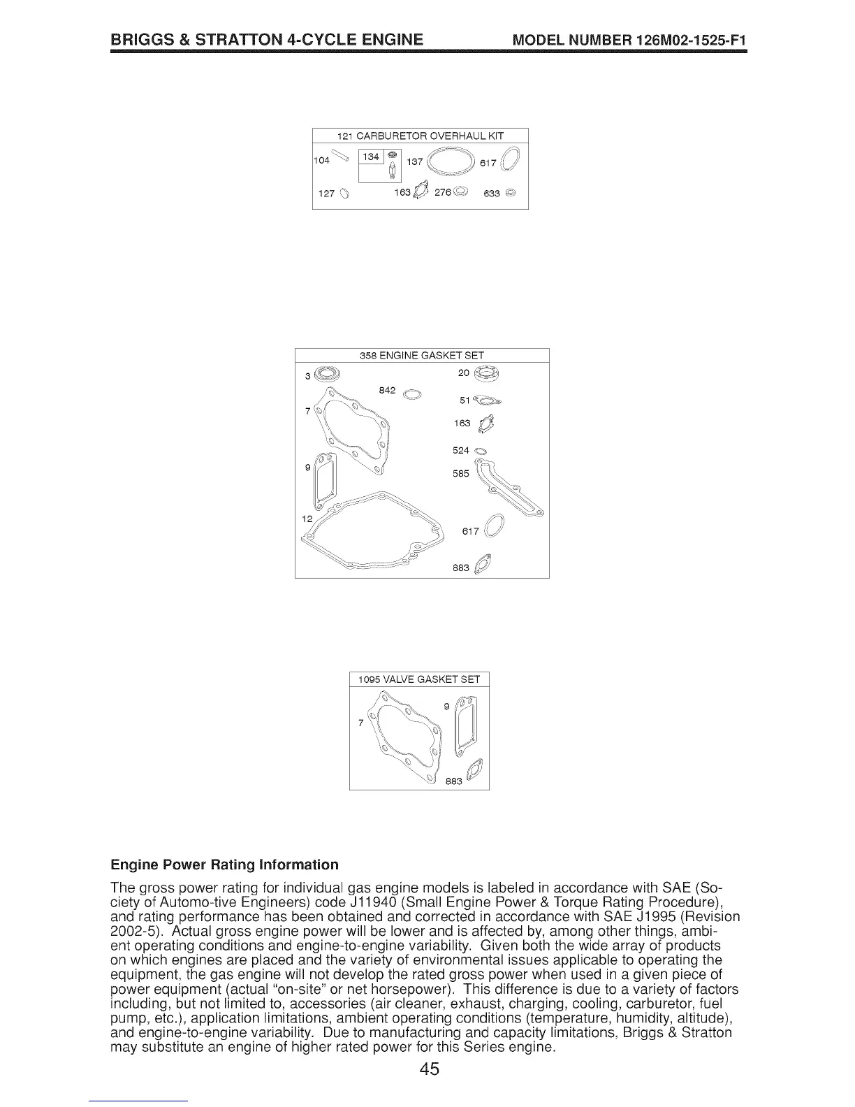 The gross power rating for individual gas engine models is labeled in accordance with SAE (So-