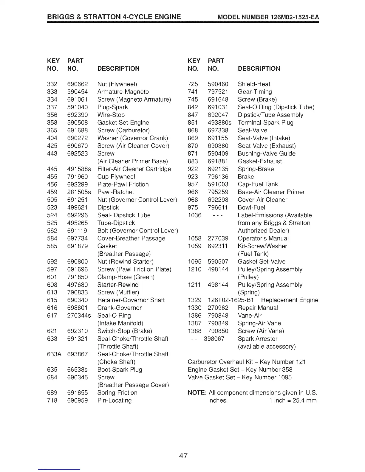 BRIGGS & STRATTON 4=CYCLE ENGINE MODEL NUMBER 126M02=1525=EA
