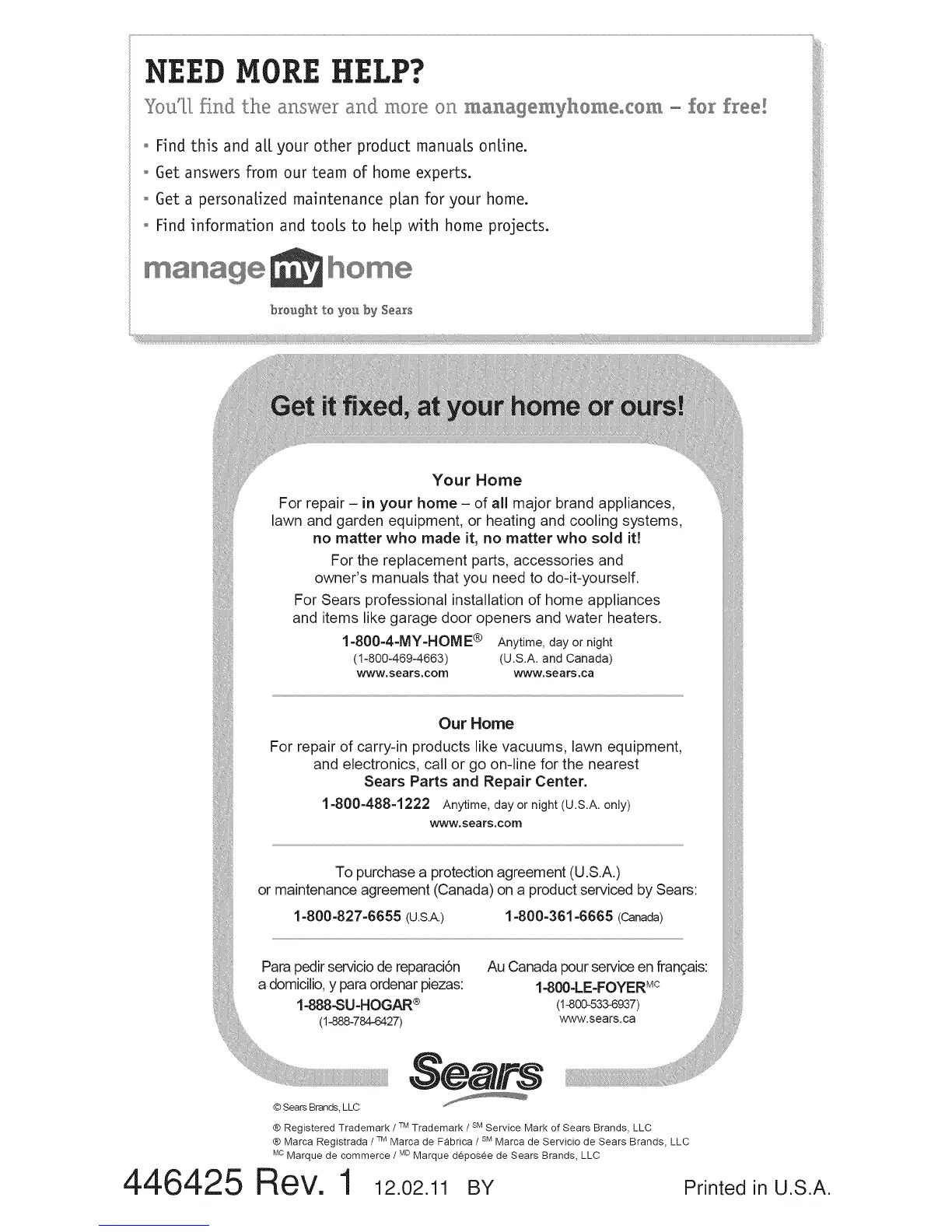 ® Registered Trademark / TMTrademark / SMService Mark of Sears Brands, LLC