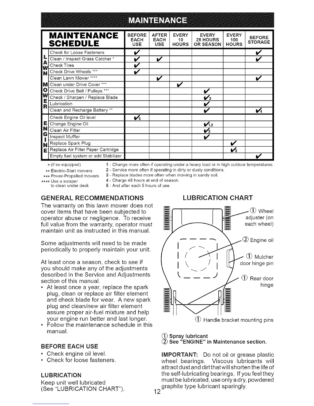 (See "LUBRICATION CHART").