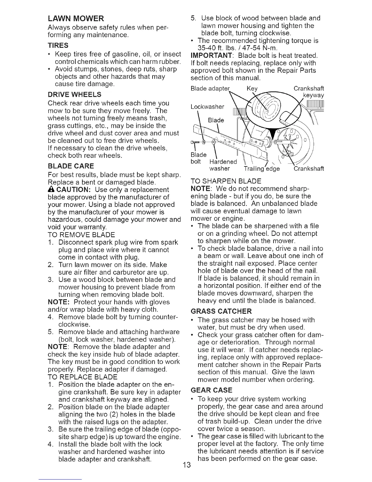 blade adapter and crankshaft.