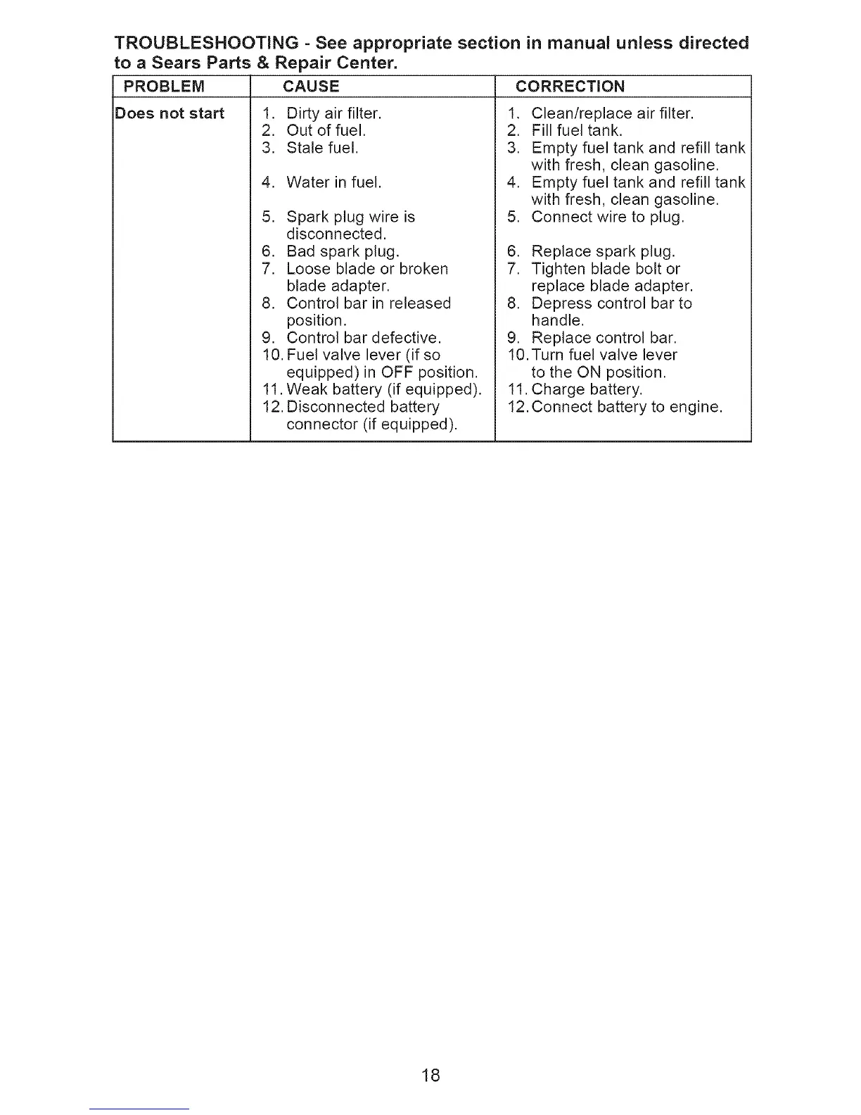 Does not start ,