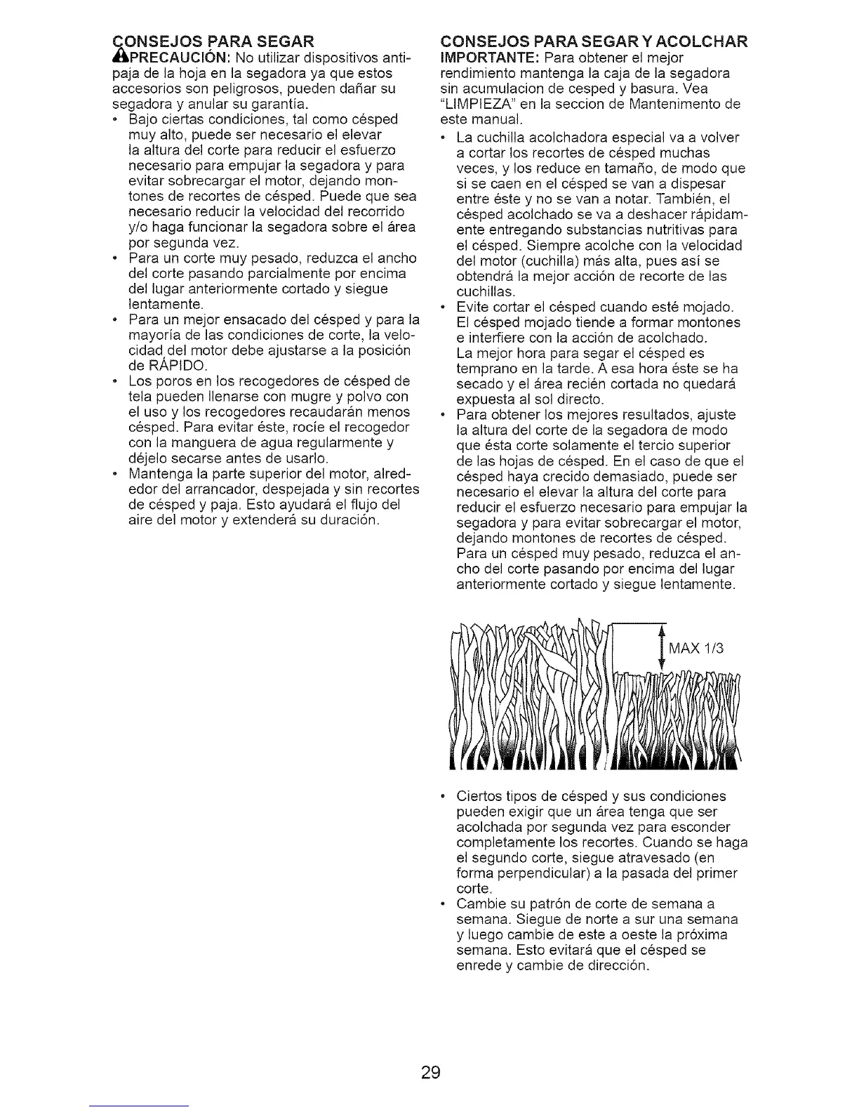 * Evite cortar el cesped cuando este mojado.