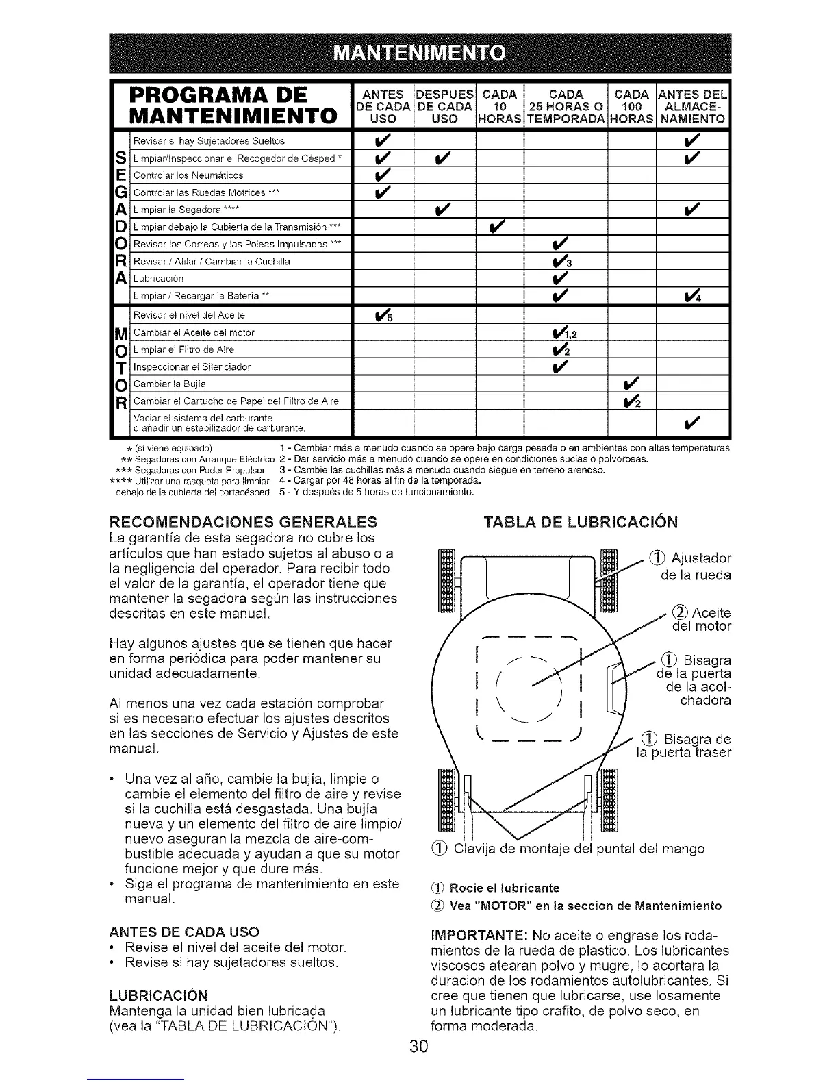 ** Segadoras con Arranque El_ctrico 2 - Dar servicio mas a menudo cuando se opere en condiciones sucias o polvorosas.