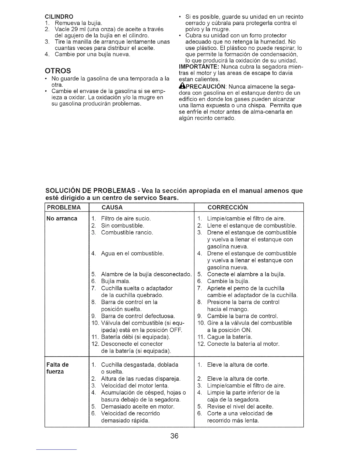 SOLUClON DE PROBLEIVIAS - Vea la secci6n apropiada en el manual amenos que