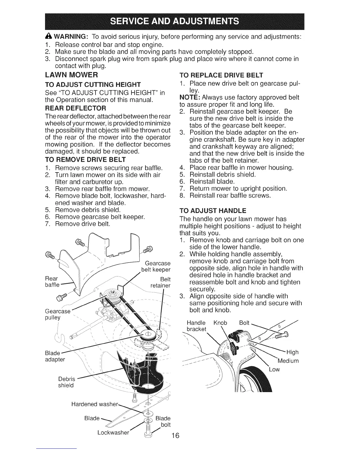 LAWN MOWER TO REPLACE DRIVE BELT