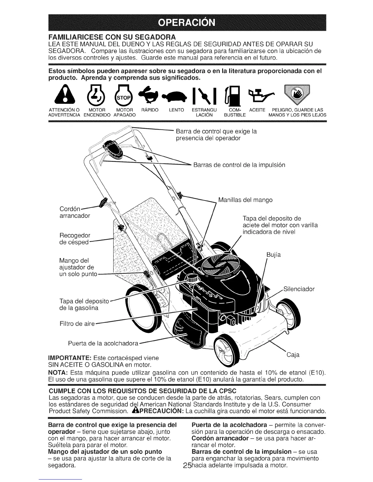 Product Safety Commission. 4Bi,PREOAUOION: La cuchilla gira cuando el motor est,. funcionando.