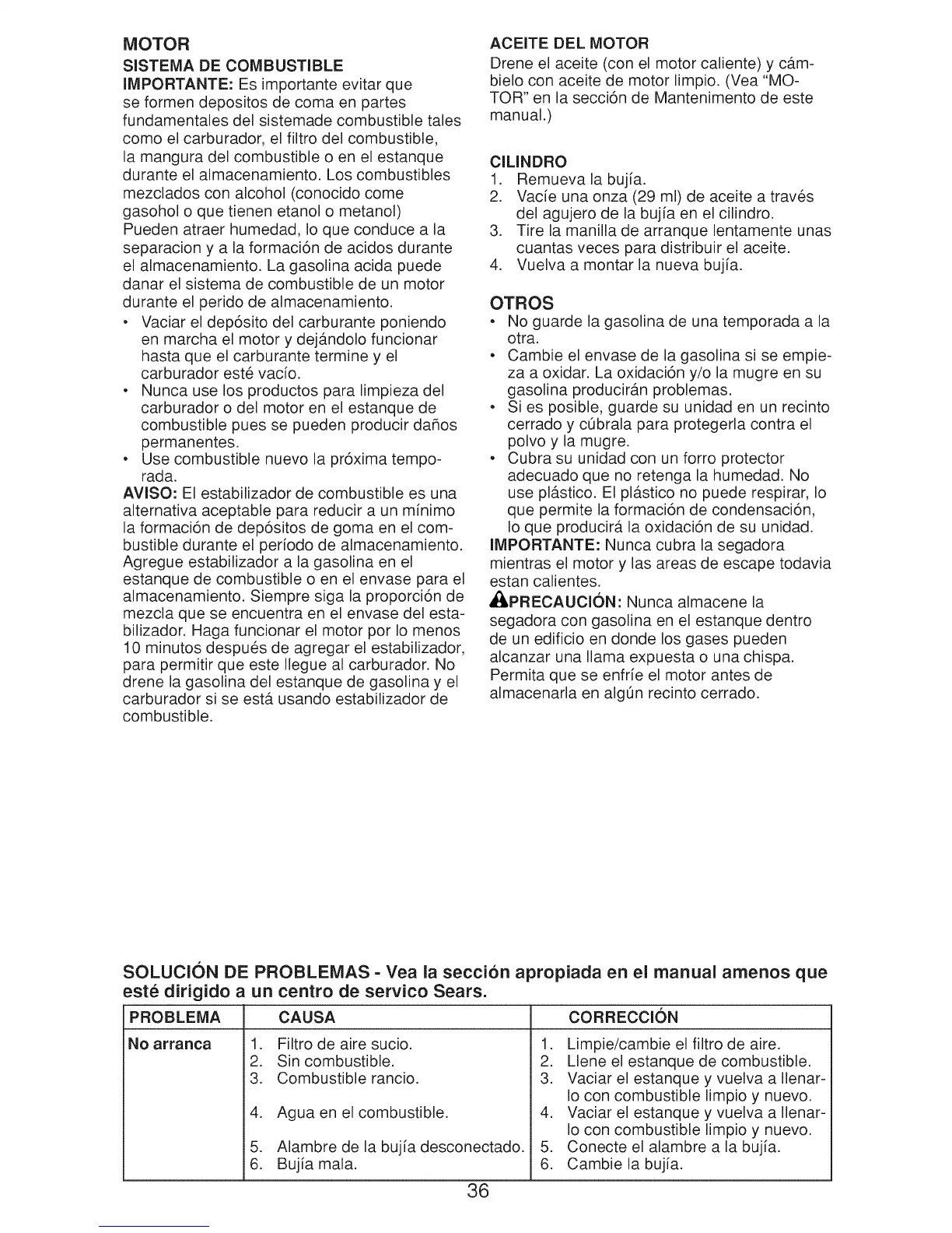 SOLUCION DE PROBLEMAS - Yea ia secci6n apropiada en el manual amenos que