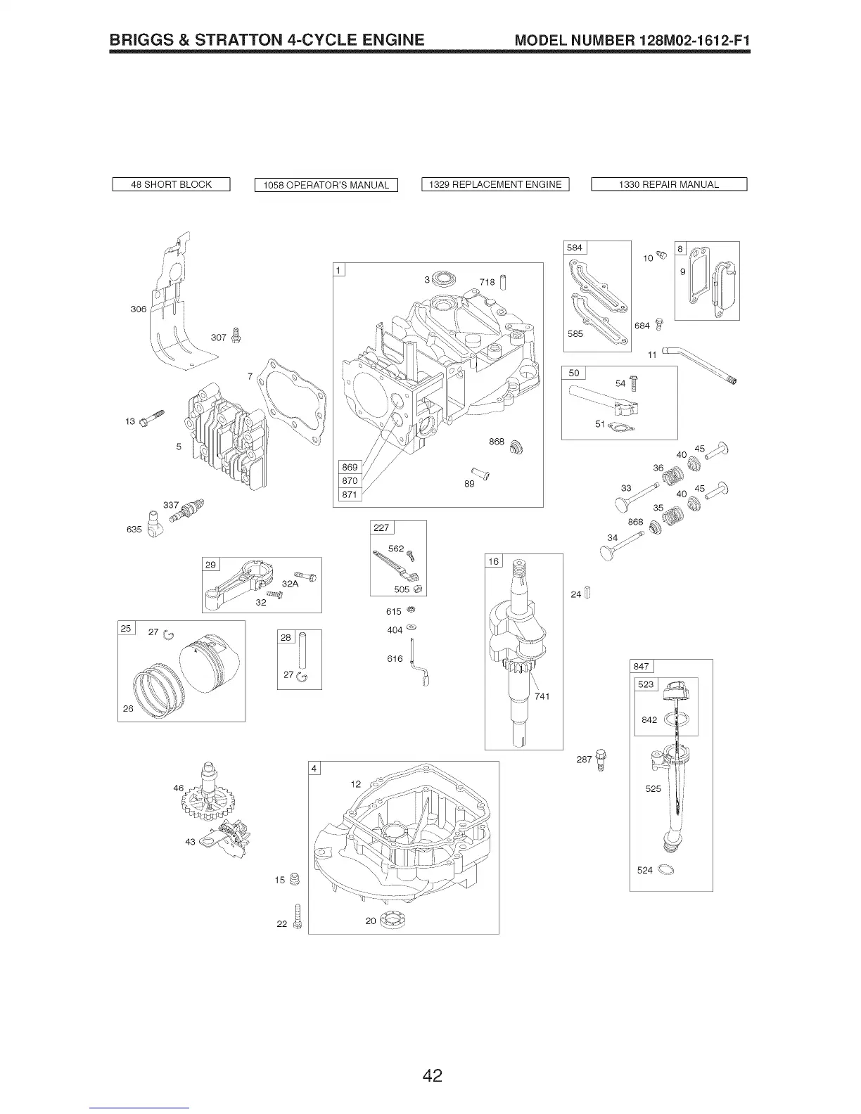 BRIGGS & STRATTON 4-CYCLE ENGINE MODEL NUMBER 128M02=1612=F1