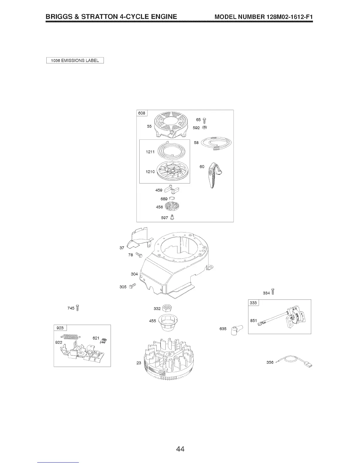 BRIGGS & STRATTON 4-CYCLE ENGINE MODEL NUMBER 128M02=1612=F1