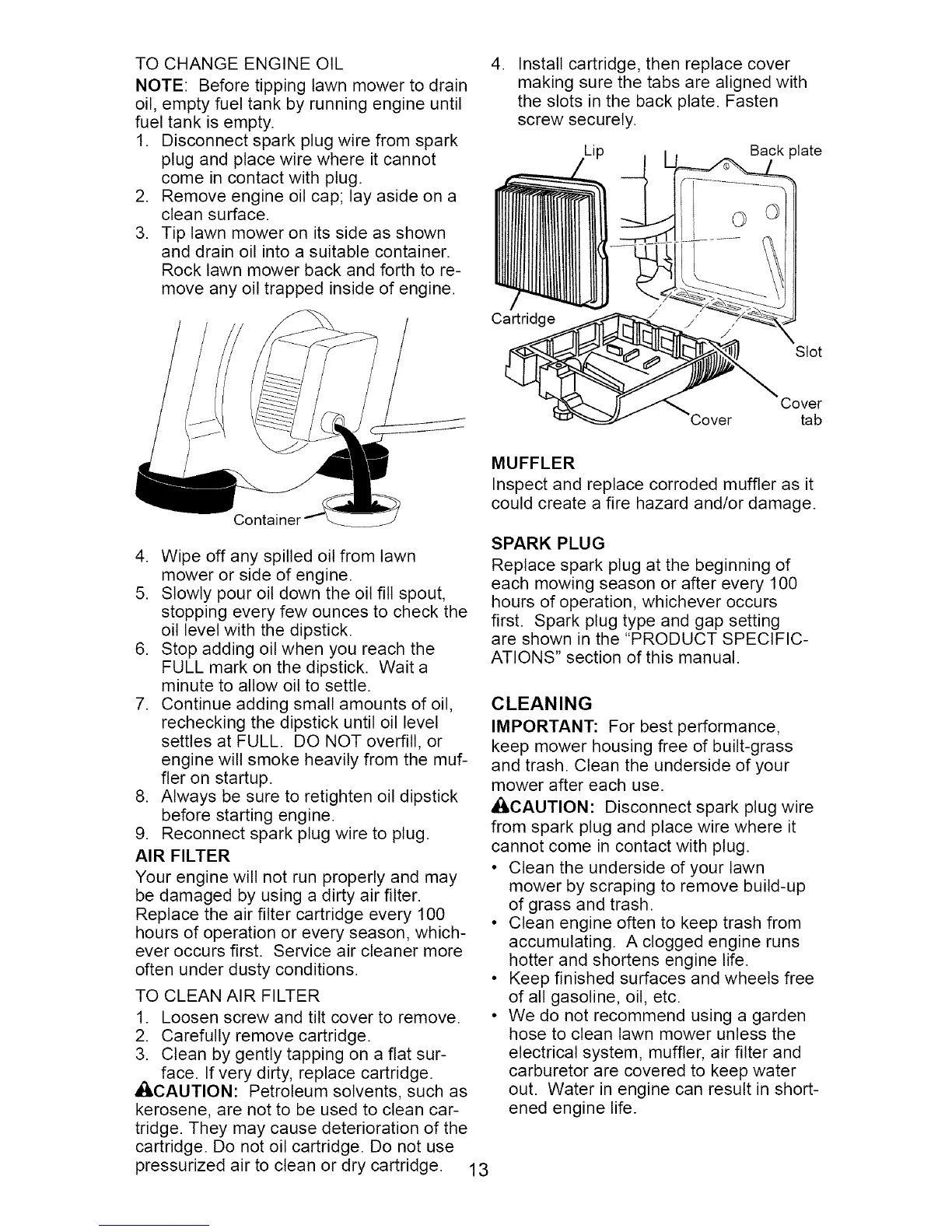 • Clean engine often to keep trash from