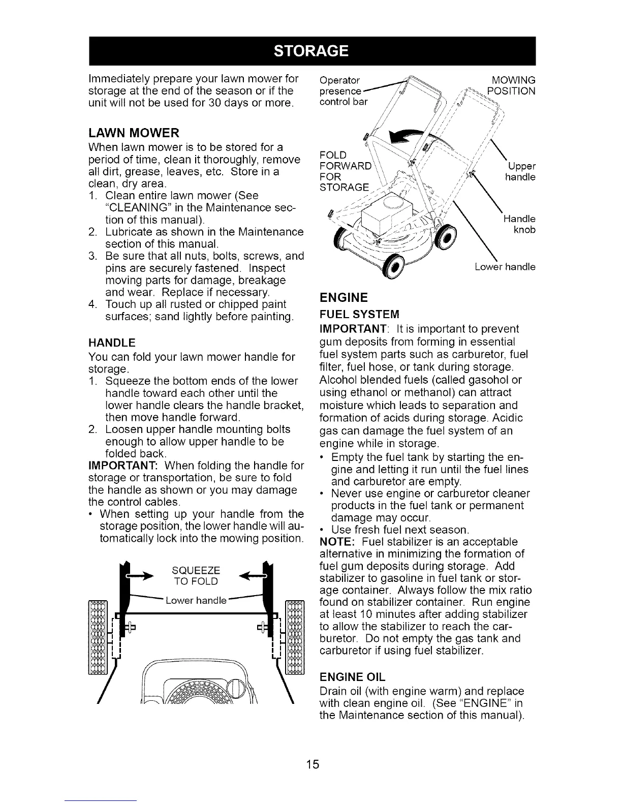 When lawn mower is to be stored for a