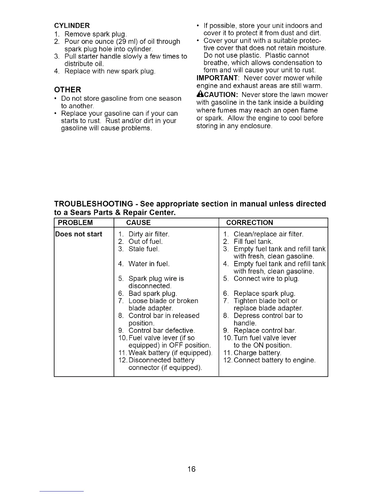 IMPORTANT: Never cover mower while