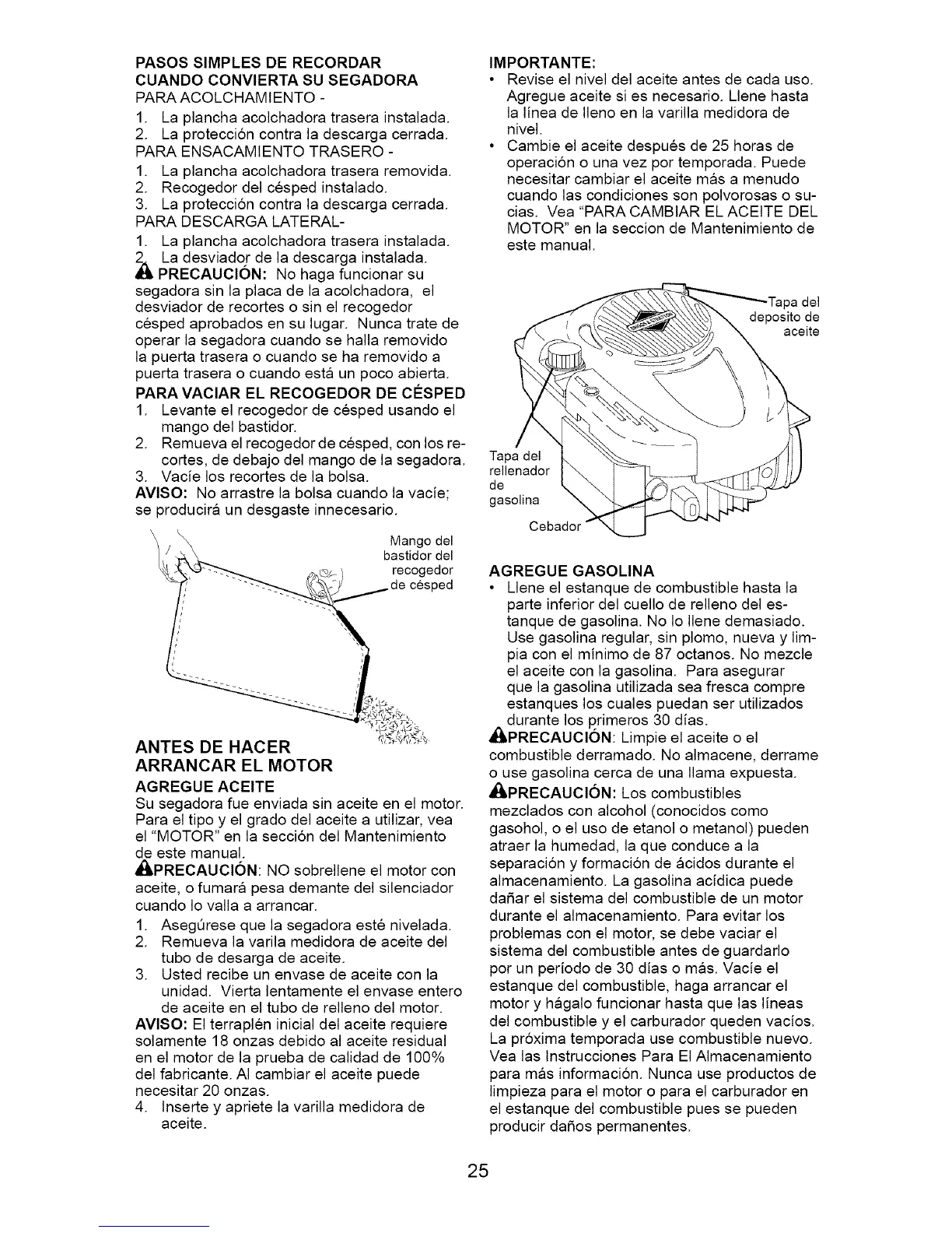 • Cambie el aceite despues de 25 horas de