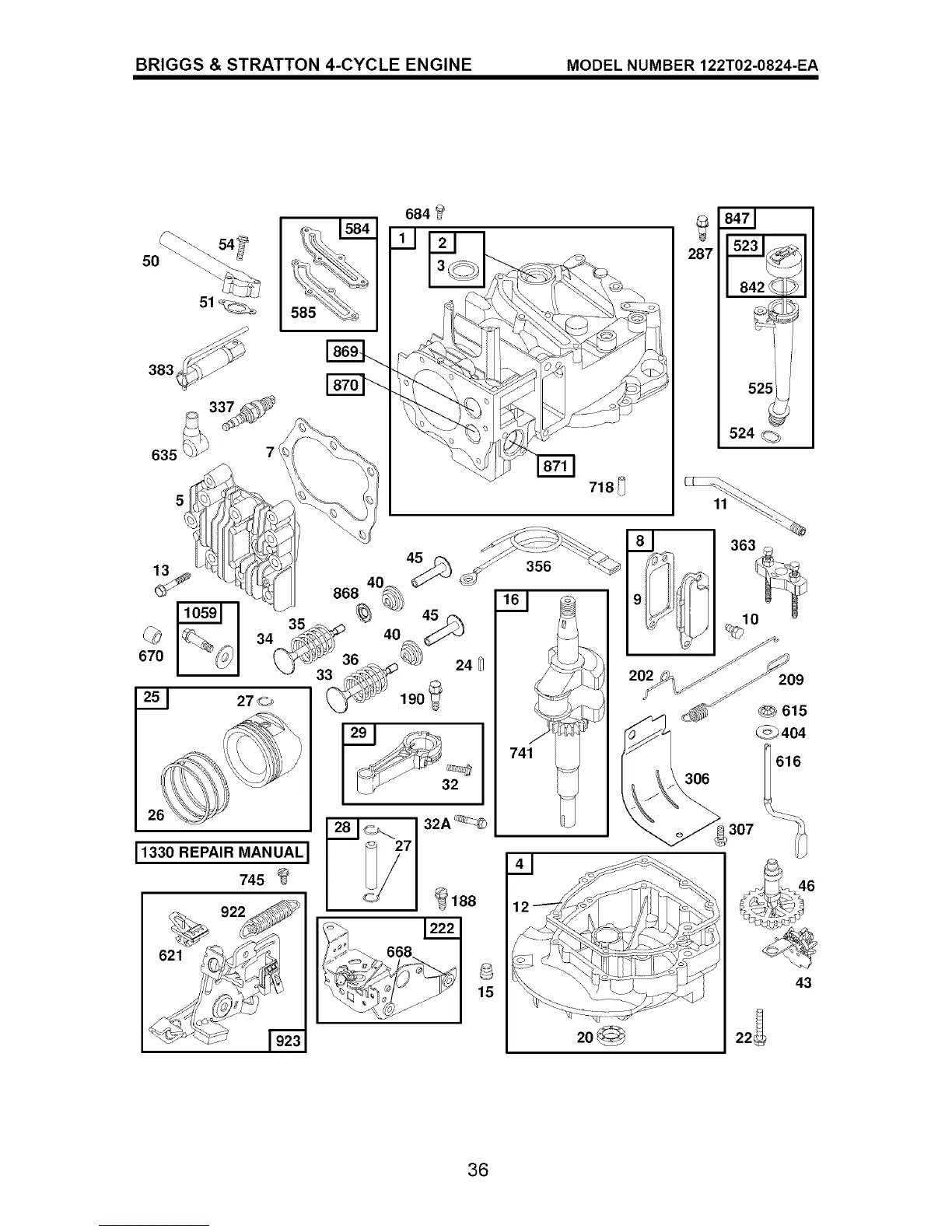 BRIGGS & STRATTON 4-CYCLE ENGINE MODEL NUMBER 122T02-0824-EA