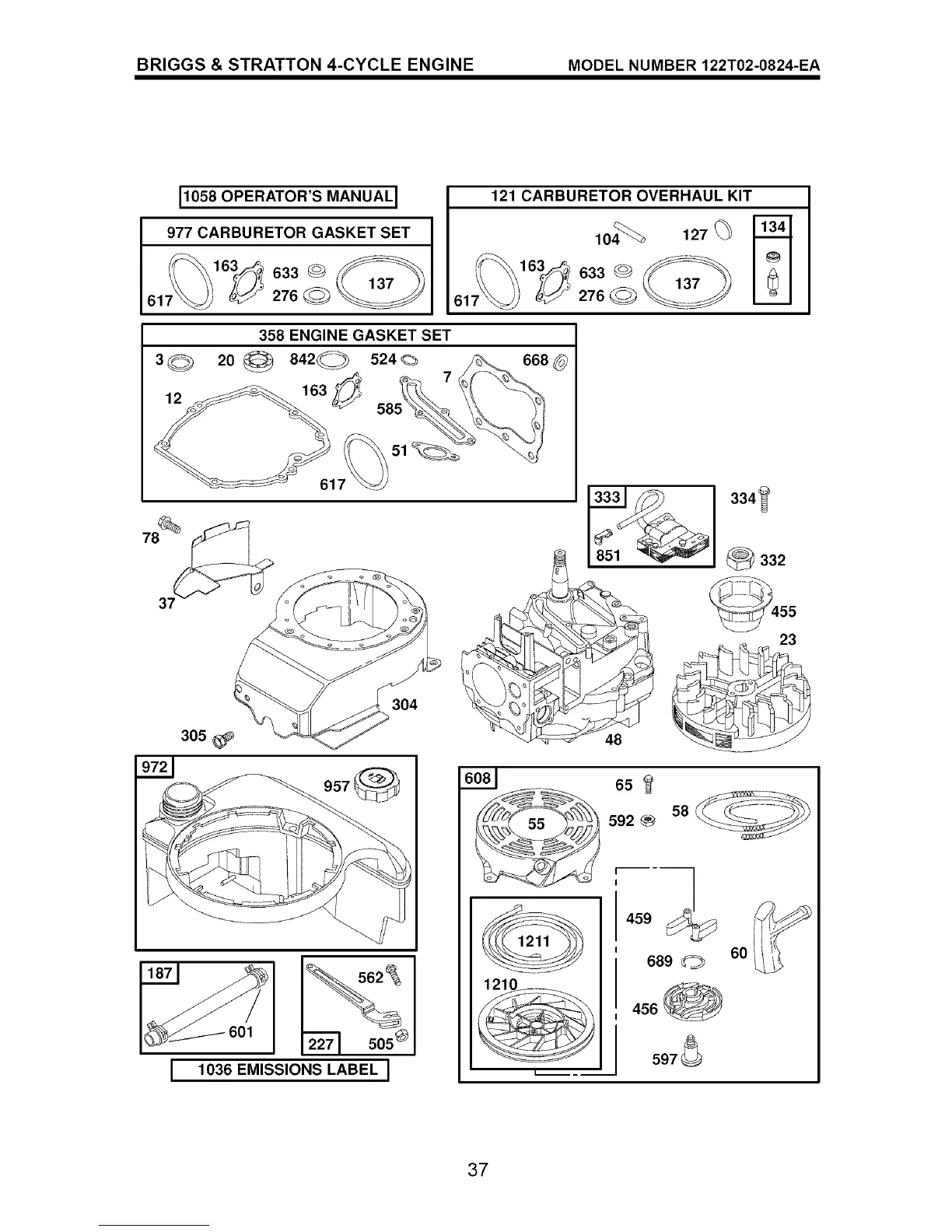 BRIGGS & STRATTON 4-CYCLE ENGINE MODEL NUMBER 122T02-0824-EA