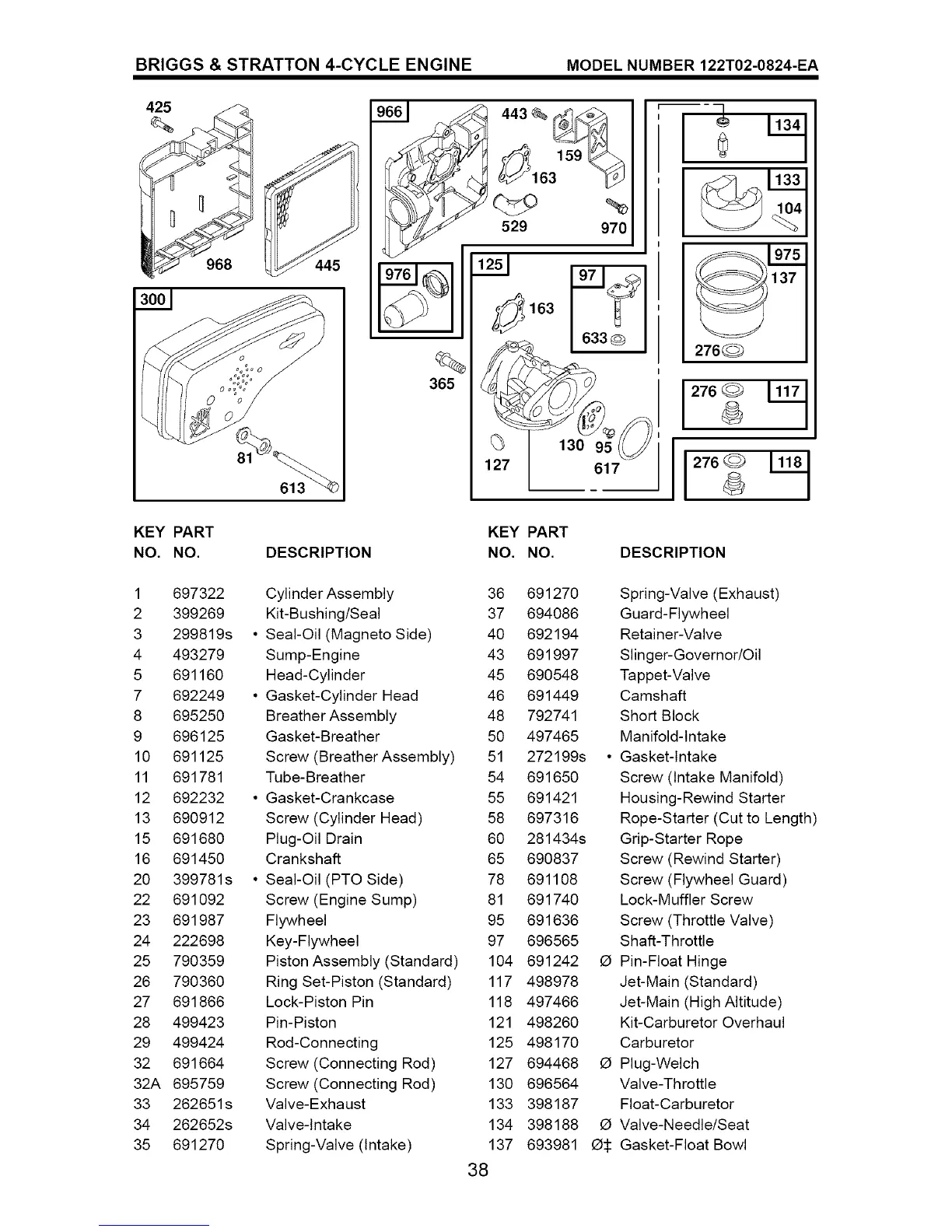 BRIGGS & STRATTON 4-CYCLE ENGINE MODEL NUMBER 122T02-0824-EA