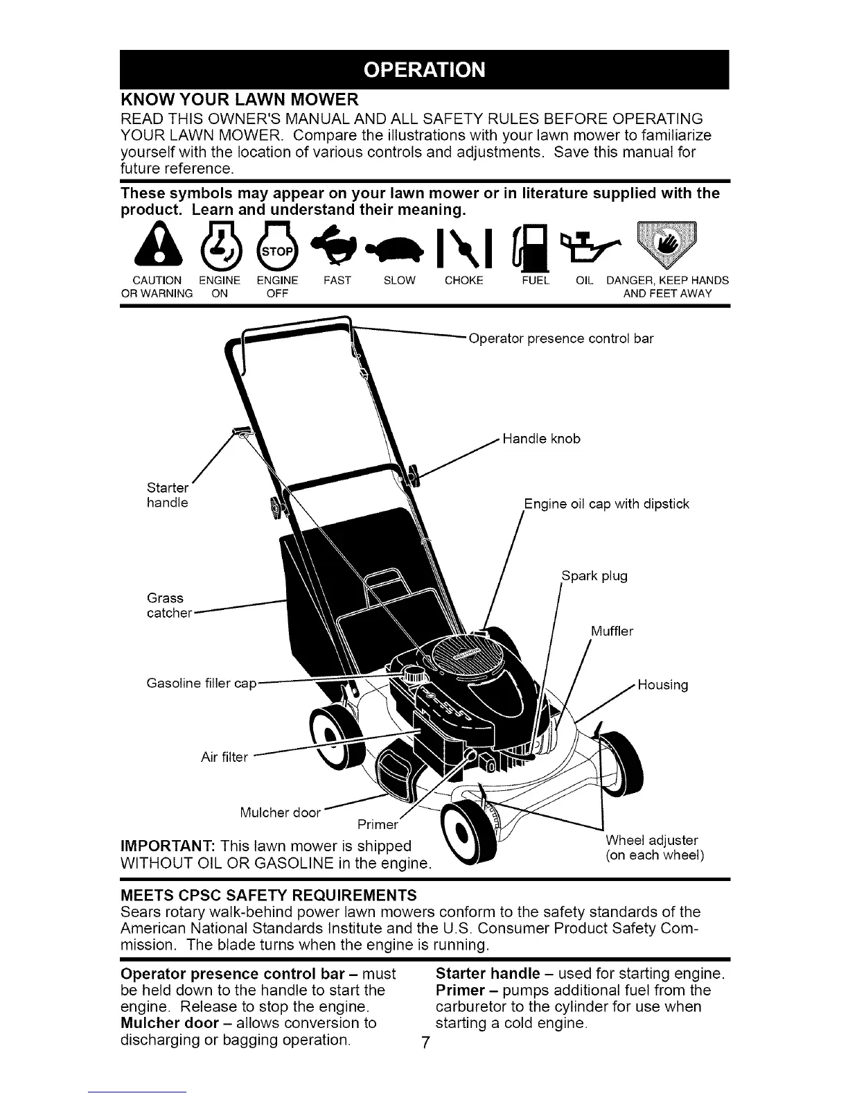 YOUR LAWN MOWER. Compare the illustrations with your lawn mower to familiarize