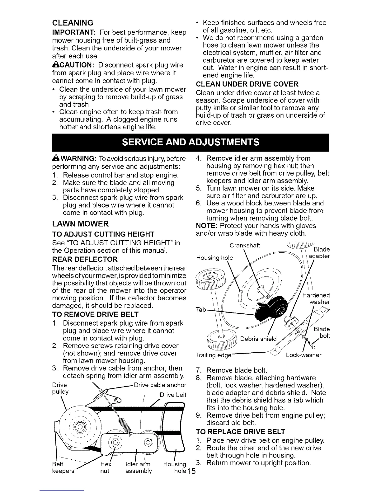 TO REPLACE DRIVE BELT