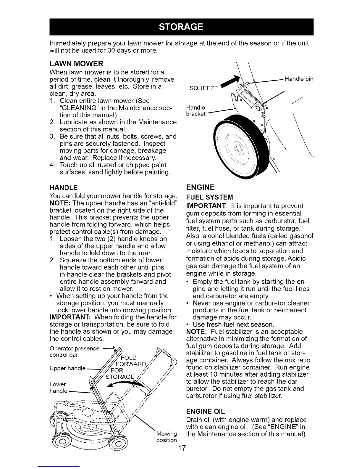 Immediately prepare your lawn mower for storage at the end of the season or if the unit