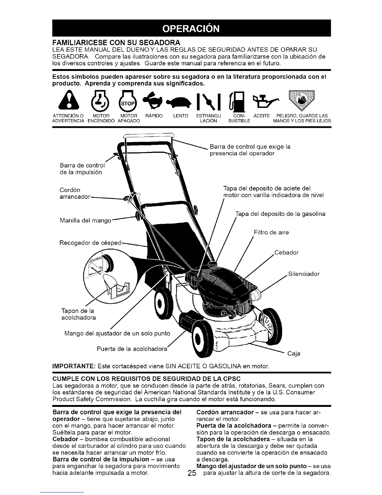 SEGADORA. Compare las ilustraciones con su segadora para familiarizarse con la ubicacion de