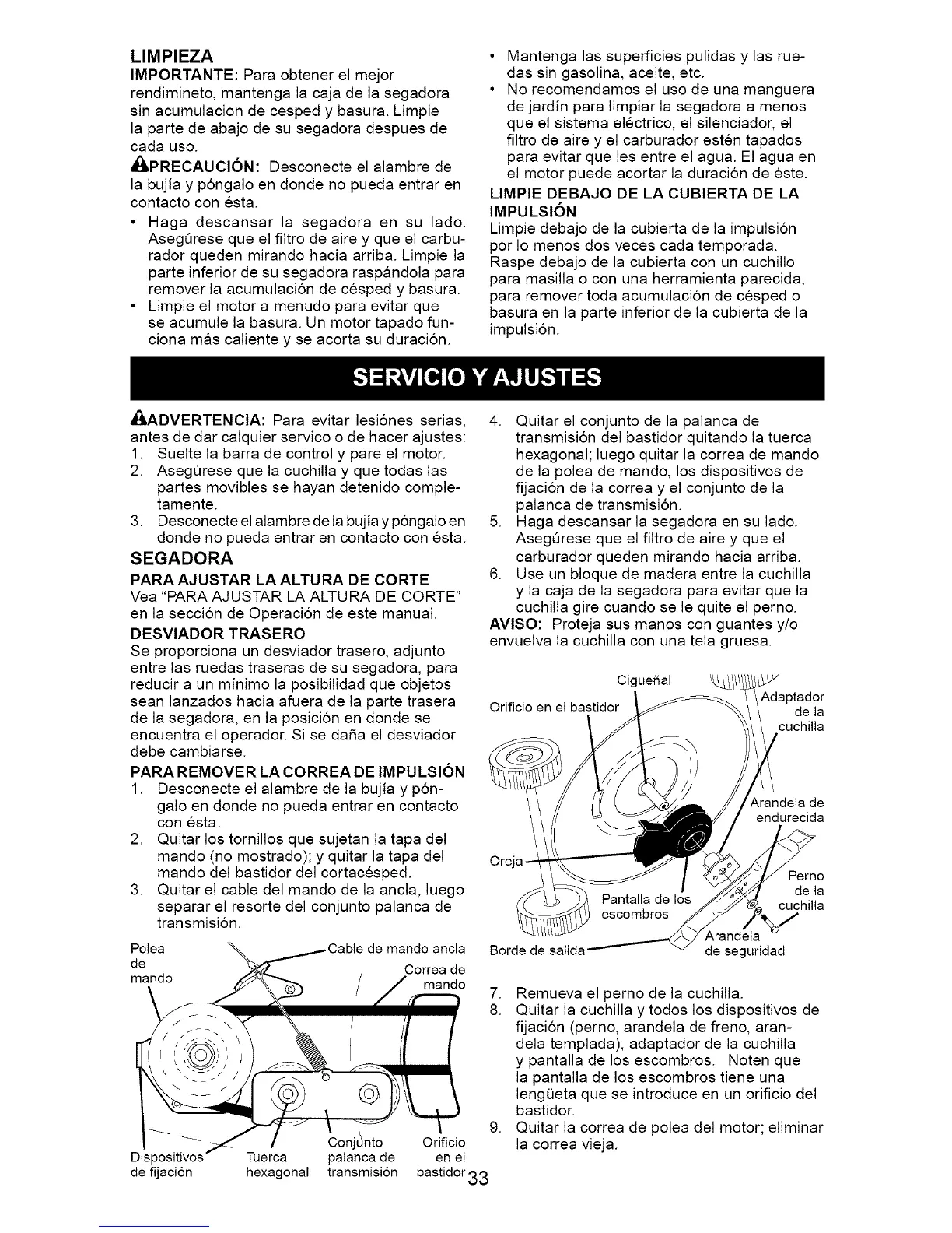 Vea "PARA AJUSTAR LA ALTURA DE CORTE"