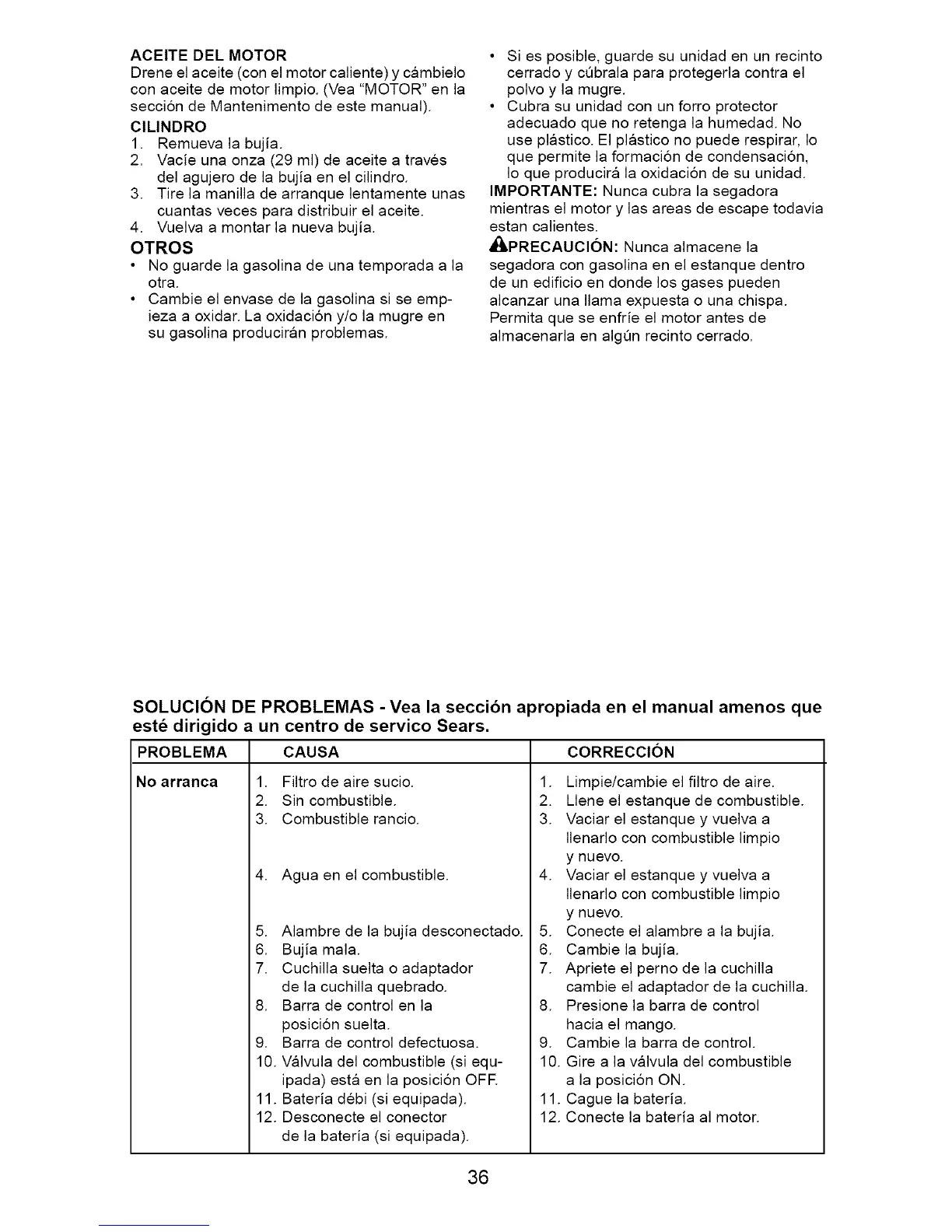 SOLUCION DE PROBLEMAS - Yea la seccibn apropiada en el manual amenos que