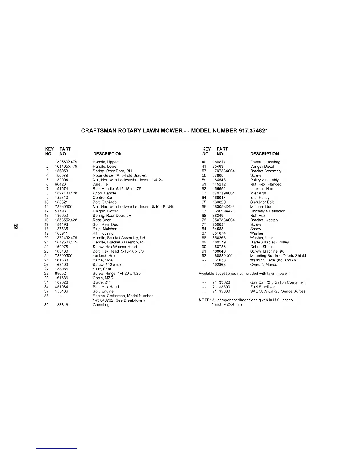CRAFTSMAN ROTARY LAWN MOWER - - MODEL NUMBER 917.374821