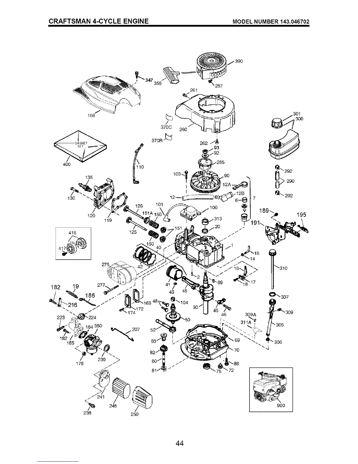 CRAFTSMAN 4-CYCLE ENGINE MODEL NUMBER 143.046702