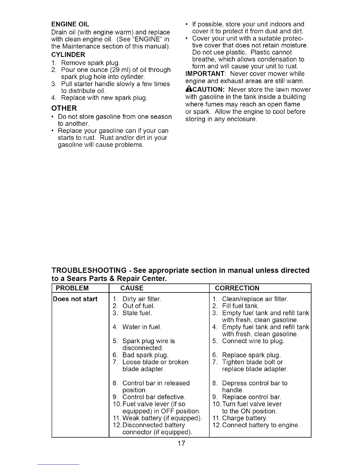 • I,CAUTION: Never store the lawn mower