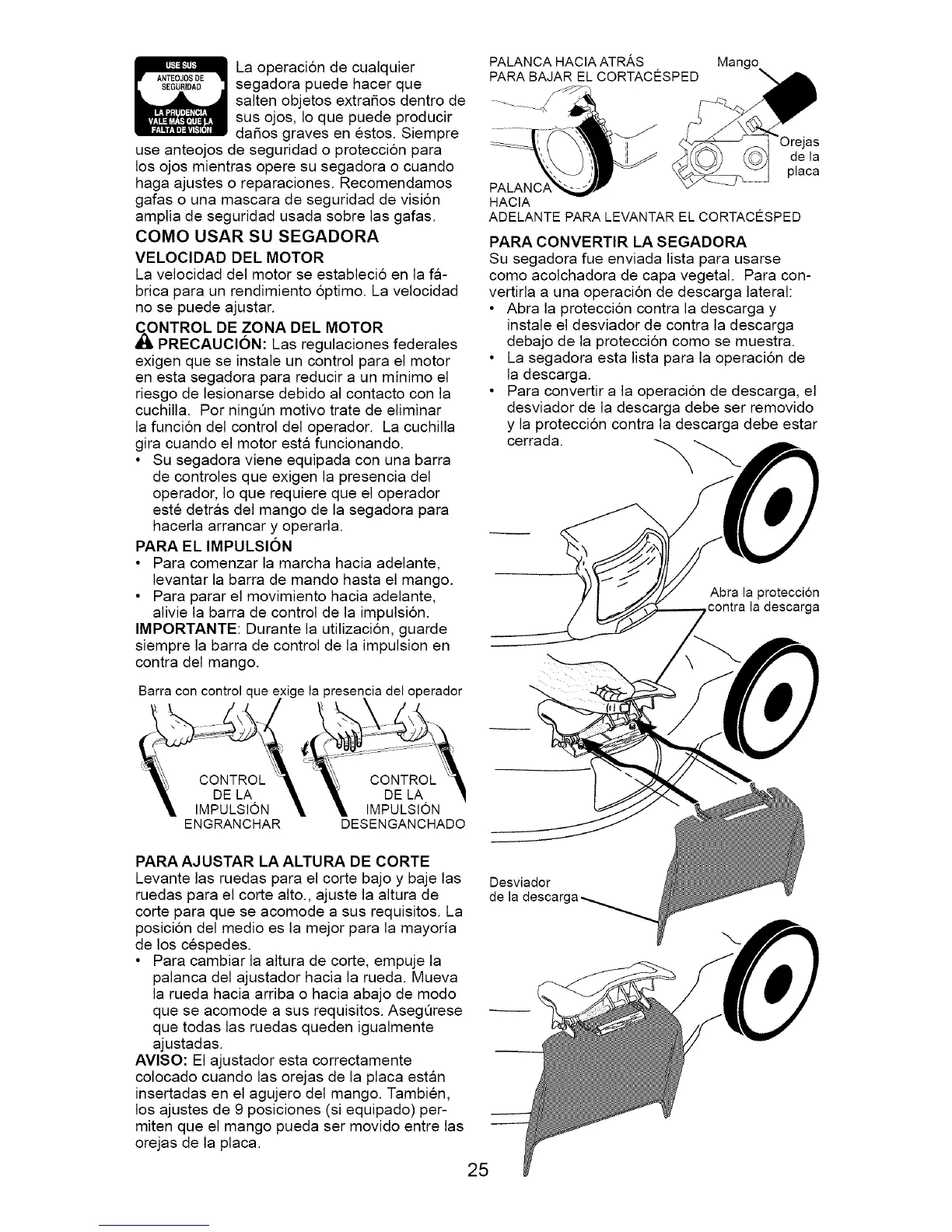 ADELANTE PARA LEVANTAR EL CORTACESPED