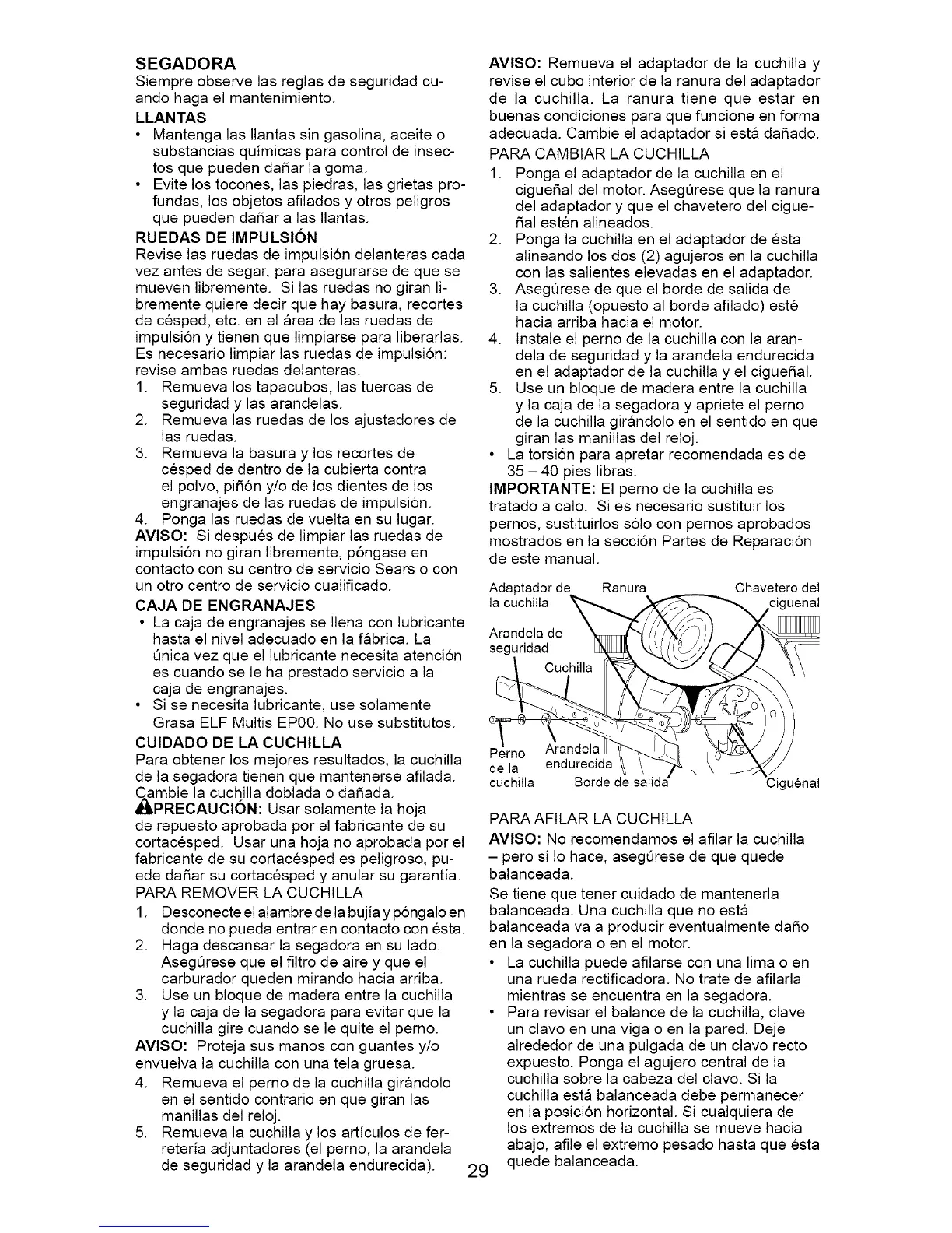 en la segadora o en el motor.