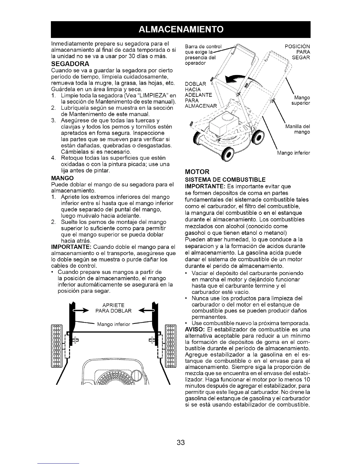 1. Limpie toda la segadora (Vea "LIMPIEZA" en