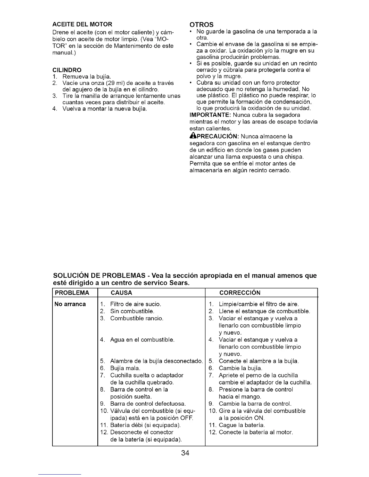 SOLUCION DE PROBLEMAS - Vea la secci6n apropiada en el manual amenos que