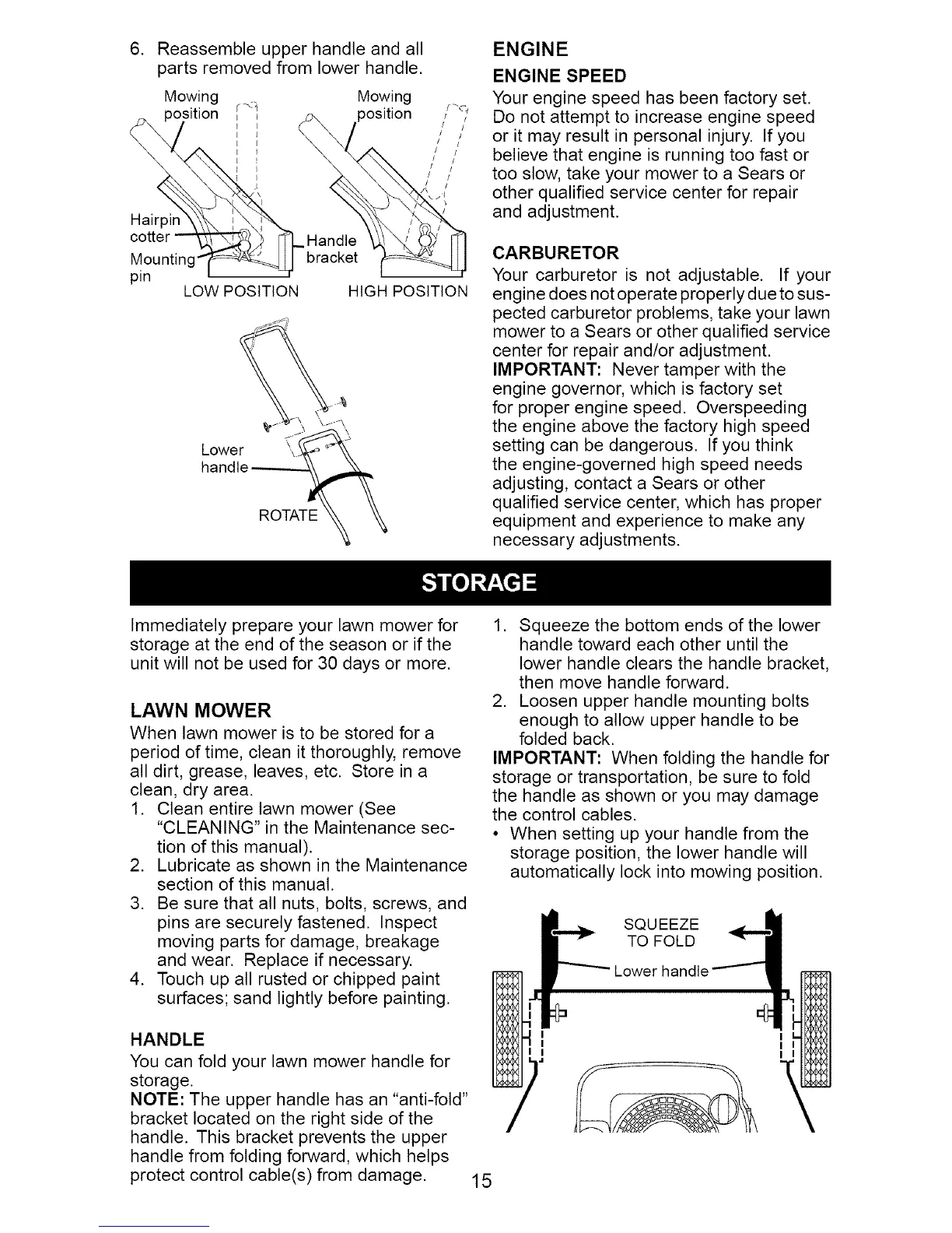 IMPORTANT: When folding the handle for