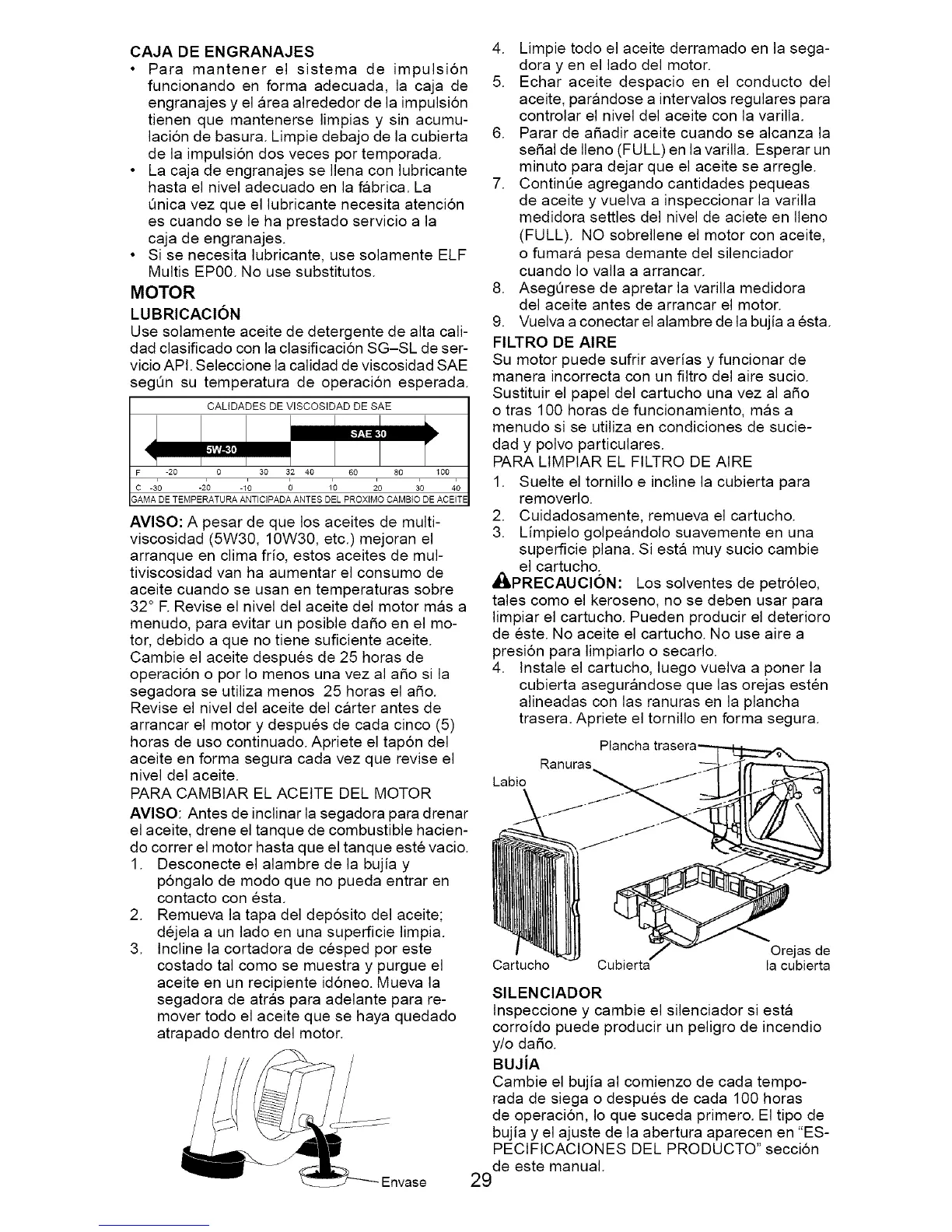 • La caja de engranajes se Ilena con lubricante