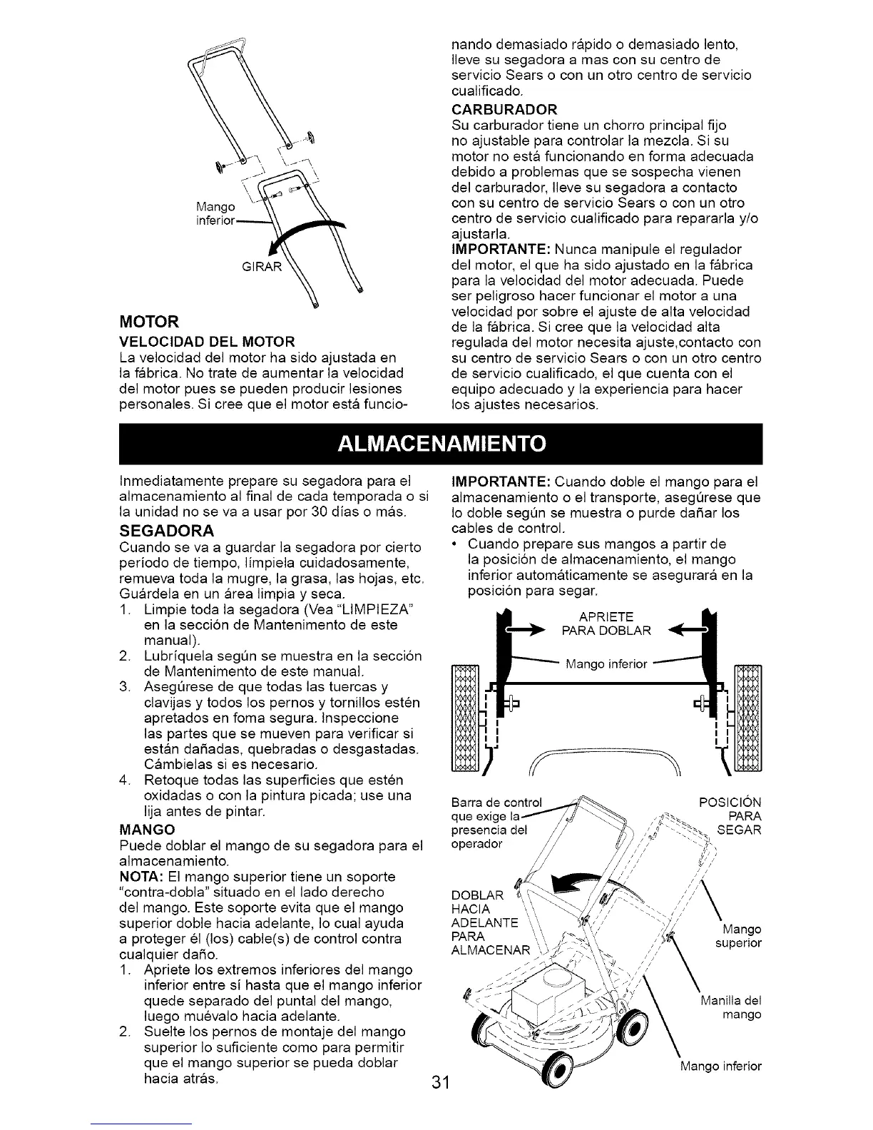 1. Limpie toda la segadora (Vea "LtMPIEZA"