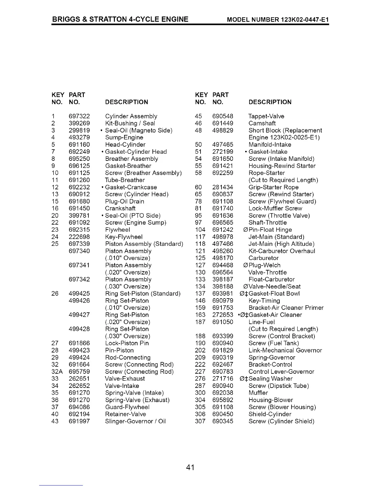 BRIGGS & STRATTON 4-CYCLE ENGINE MODEL NUMBER 123K02-0447-E1