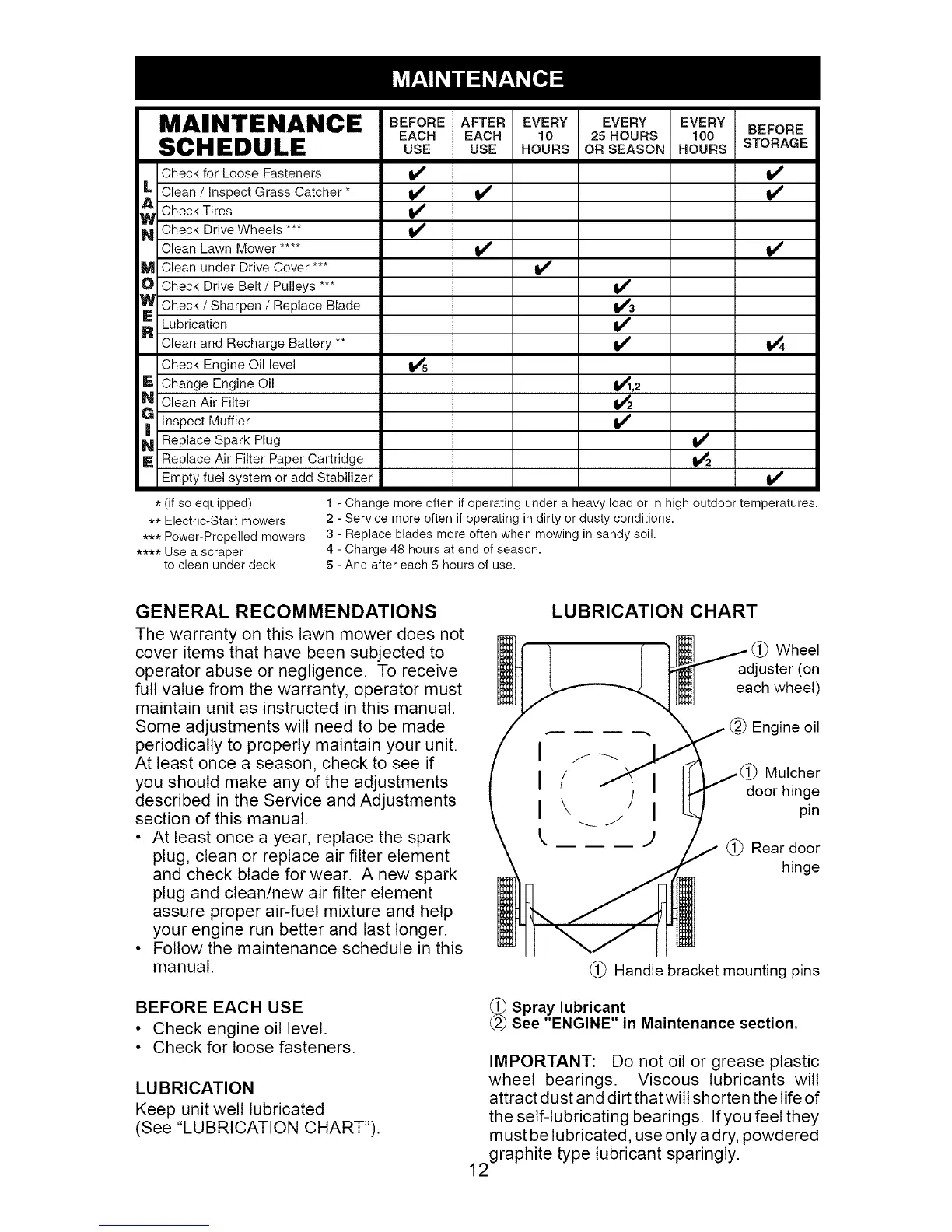 (See "LUBRICATION CHART").