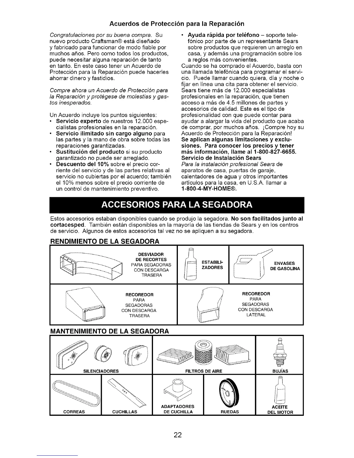 de servicio. AIgunos de estos accesorios tal vez no se apliquen a su segadora.