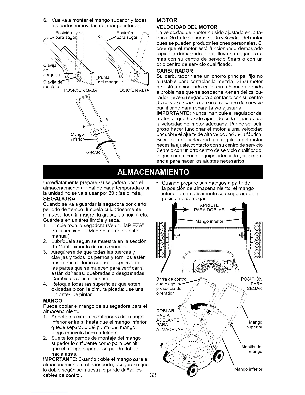 1. Limpie toda la segadora (Vea "LtMPIEZA"