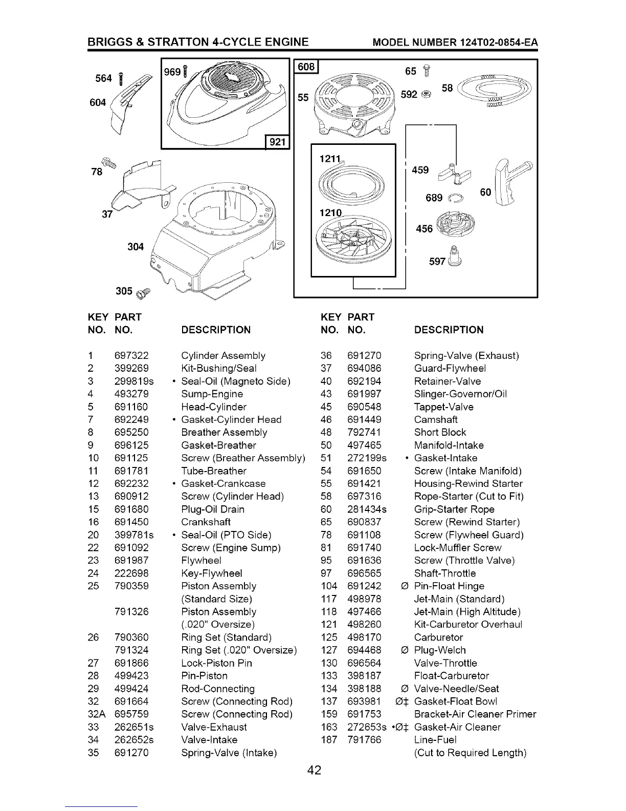 BRIGGS & STRATTON 4-CYCLE ENGINE MODEL NUMBER 124T02-0854-EA