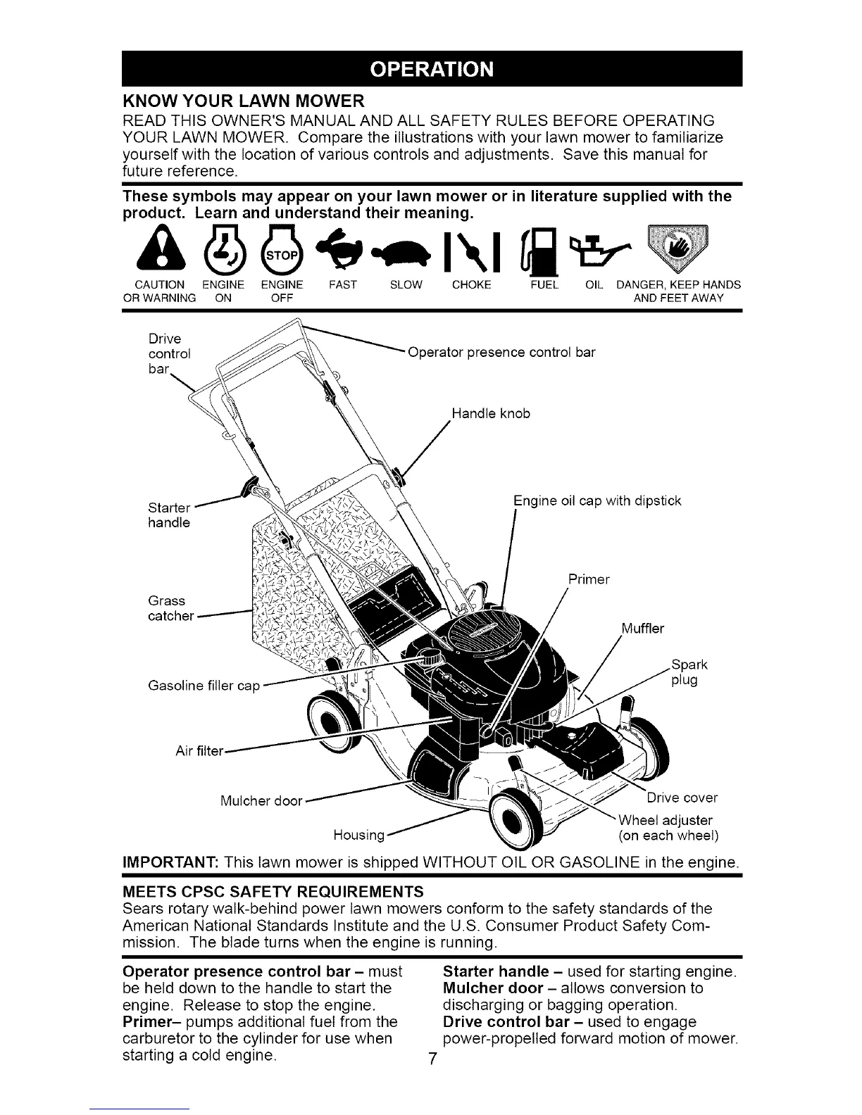 YOUR LAWN MOWER. Compare the illustrations with your lawn mower to familiarize