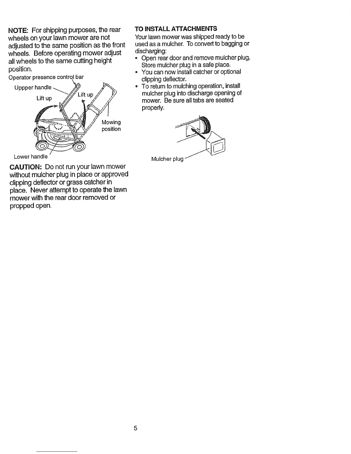 CAUTION: Do not run your lawn mower