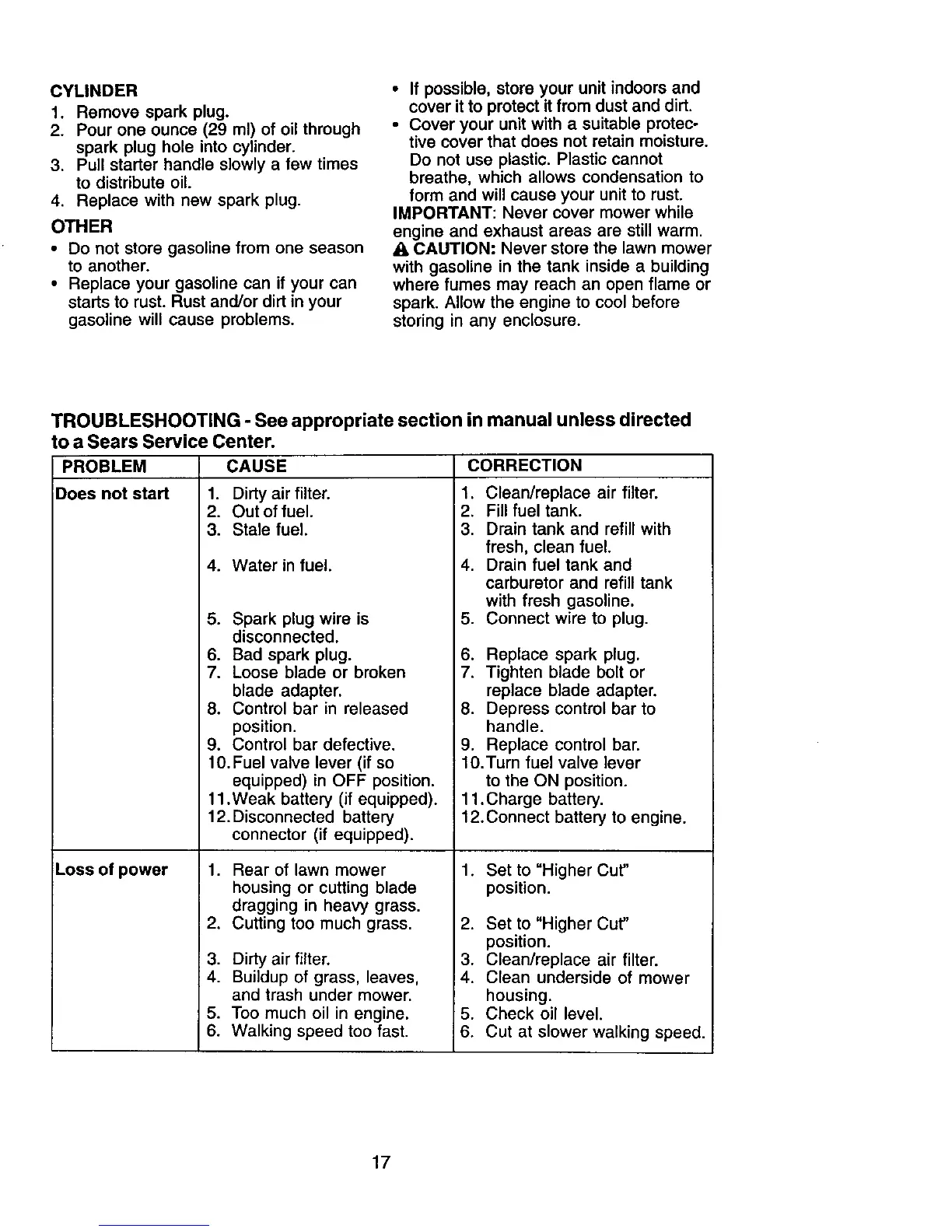 TROUBLESHOOTING - See appropriate section in manual unless directed