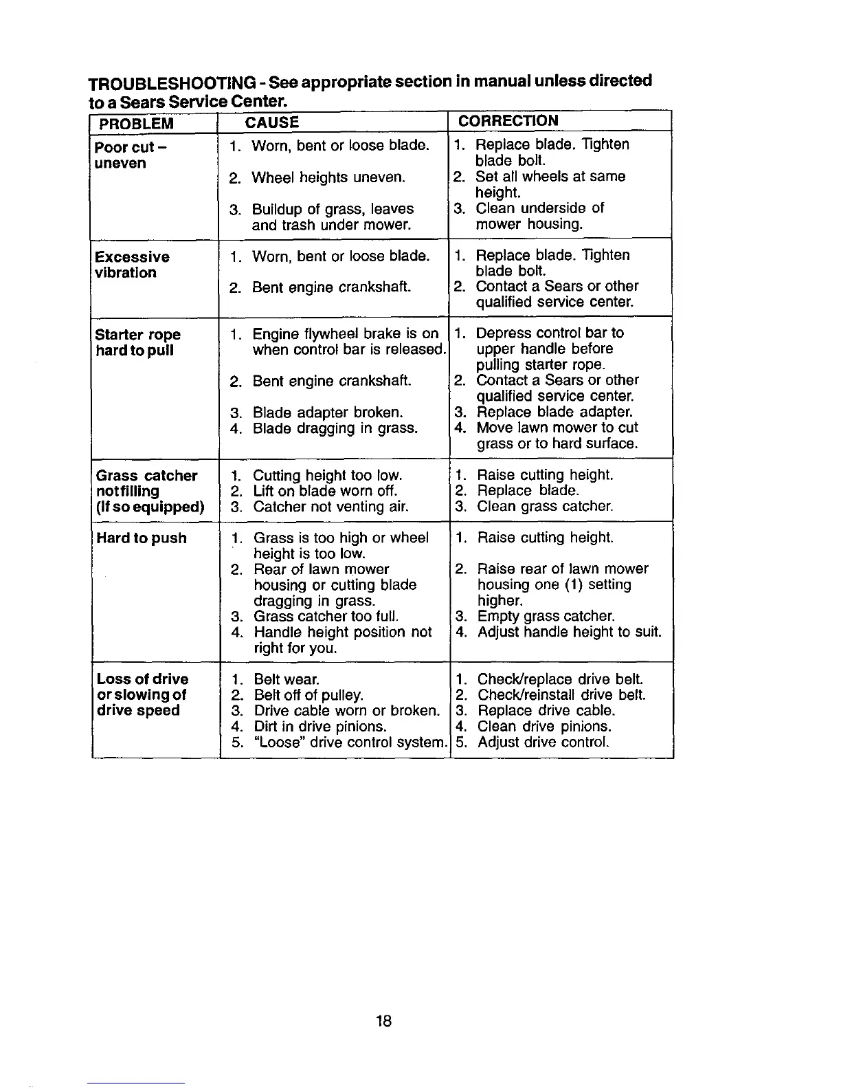 2. Bent engine crankshaft. 2. Contact a Sears or other
