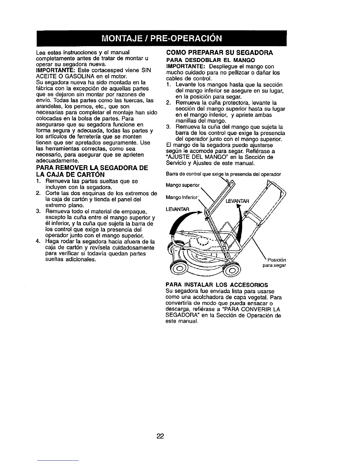 Su segadora fue enviada lista para usarse