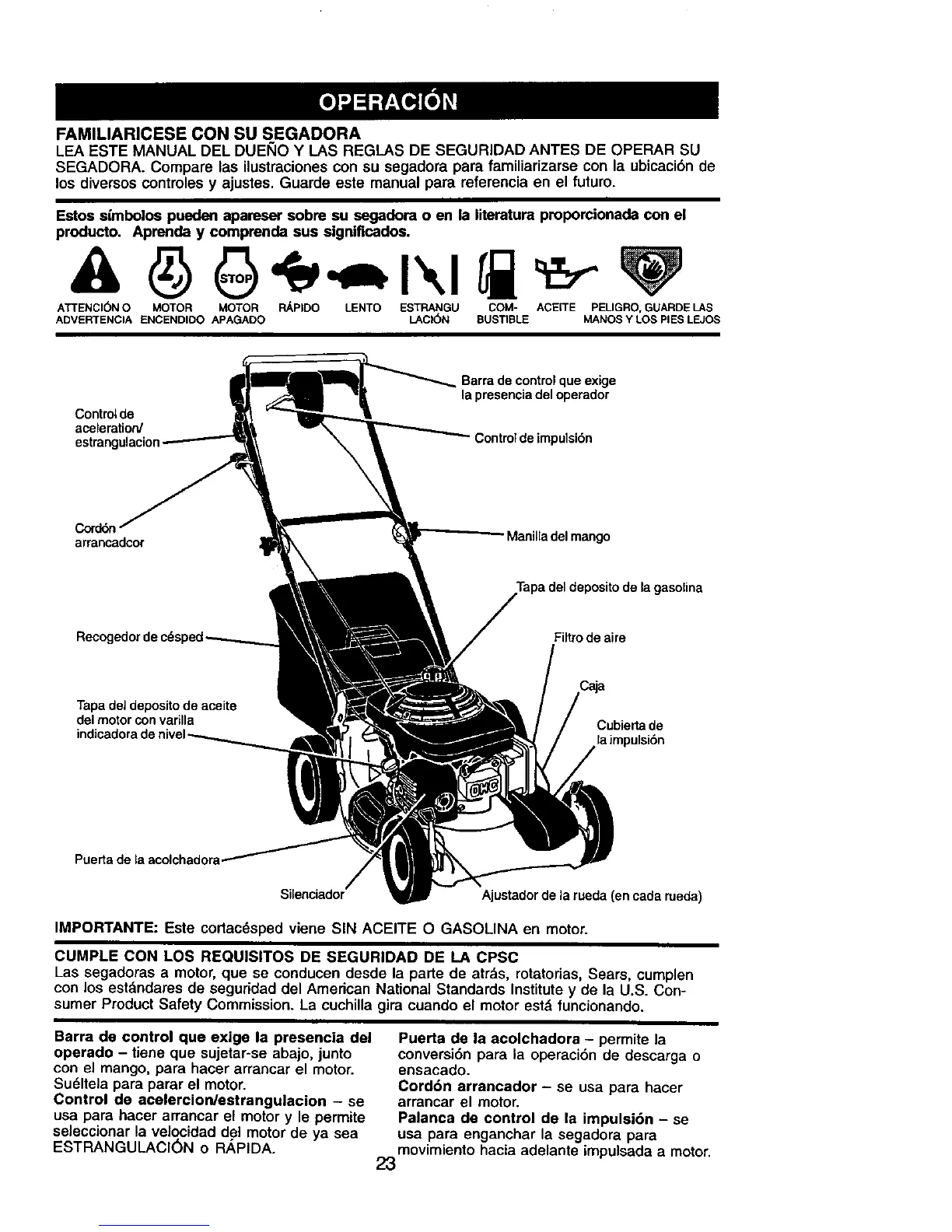 SEGADORA. Compare las ilustraciones con su segadora para familiarizarse con la ubicaci6n de