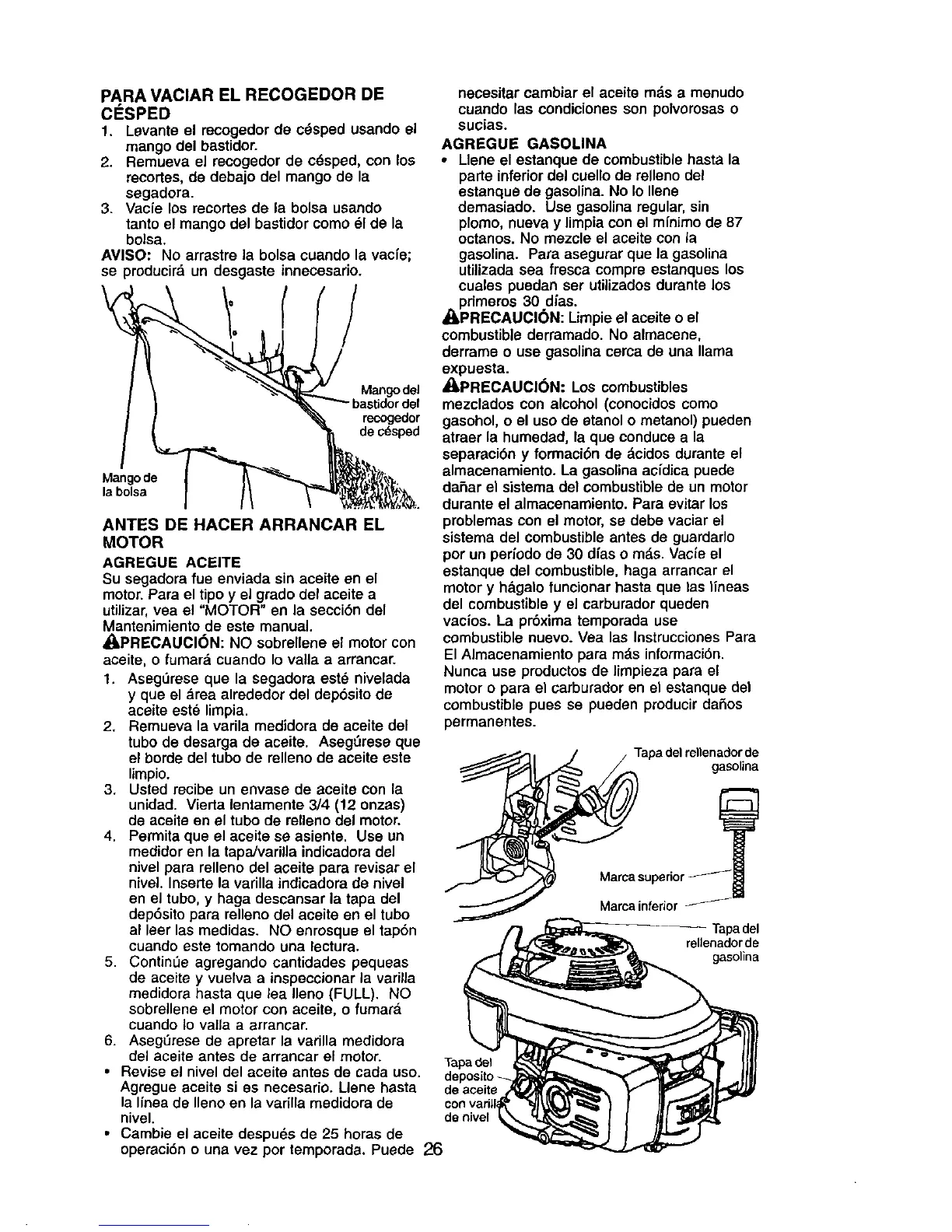 • Revise el nivel del aceite antes de cada uso.